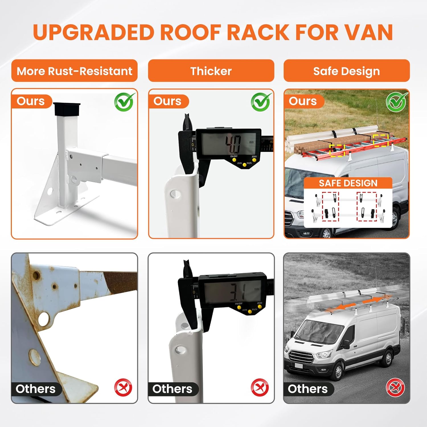 - 【???????? ????】.Van roof rack is perfect for safely carrying ladders, lumber, pipes, canoes, pool equipment, and other long or heavy items—an ideal solution for hauling bulky cargo on your van roof.
