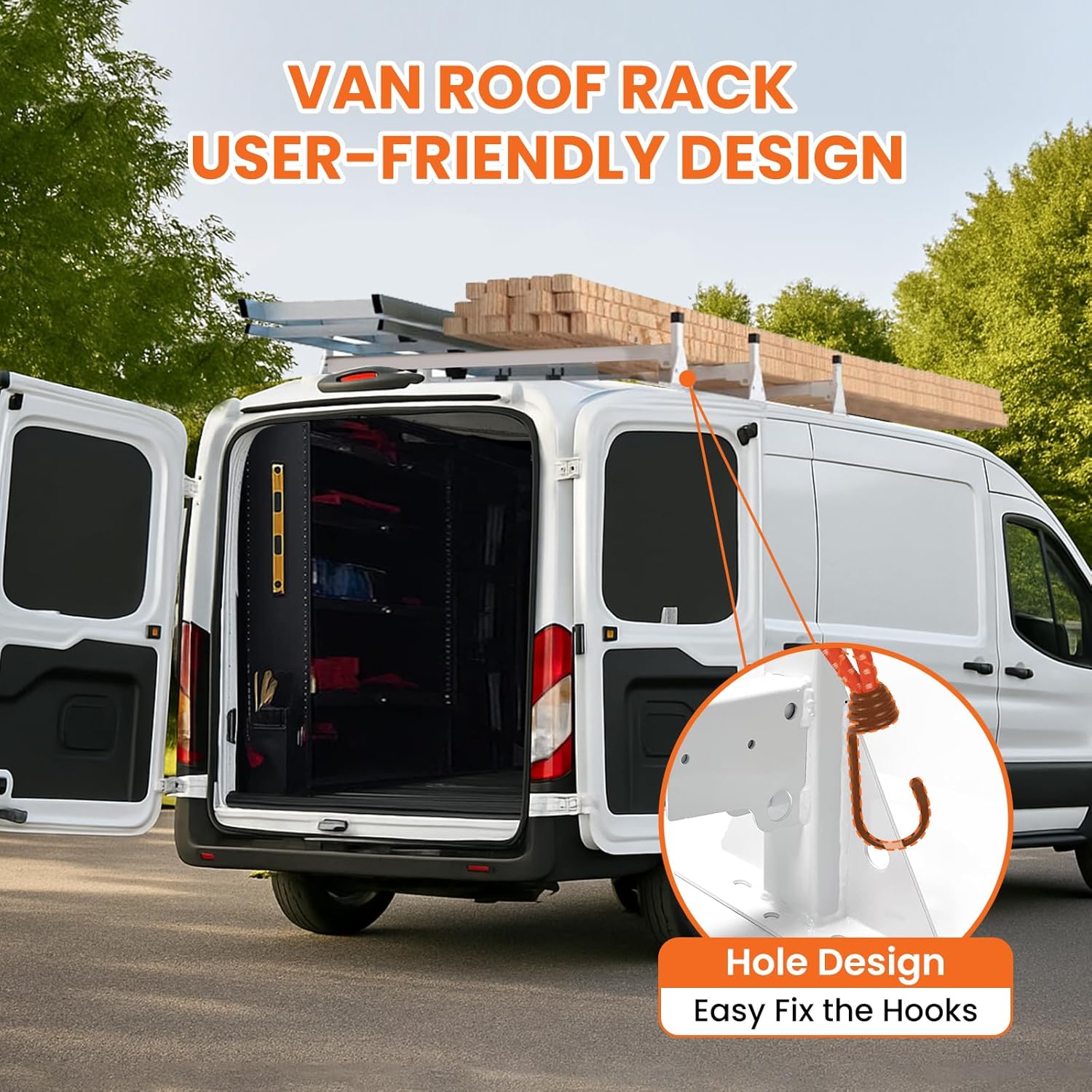 - 【???????? ????】.Van roof rack is perfect for safely carrying ladders, lumber, pipes, canoes, pool equipment, and other long or heavy items—an ideal solution for hauling bulky cargo on your van roof.